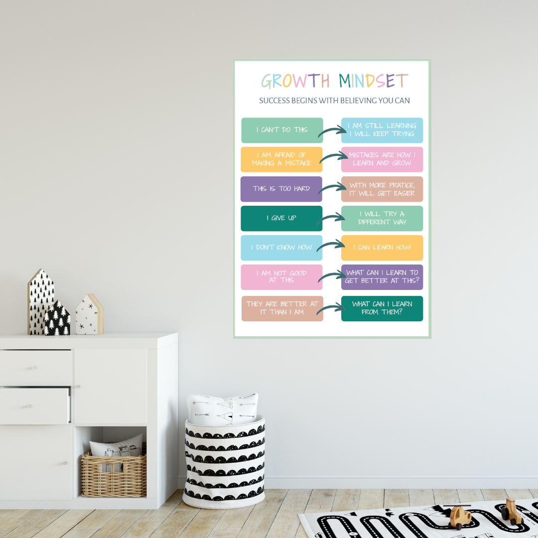 Growth Mindset Wall Decal for Kids – Pastel Inspirational Poster (28cm x 36cm)
